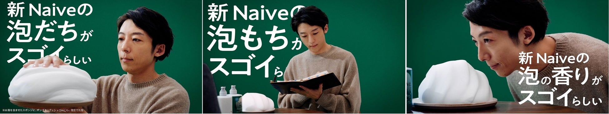 新発売の「The Naive」ボディソープは、「最高に気持ちよく洗う」とは「最高の泡で洗う」ことと考え、ナイーブ史上最高の泡を実現した商品です。WEB動画「The Naive 泡レポ対談」では、この泡の3大特長である「泡だちの速さ」、「泡もちの良さ」、「泡の香りの良さ」について、高橋一生さんからの質問に「The Naive」の開発メンバーがしっかりとお答えいたしました。