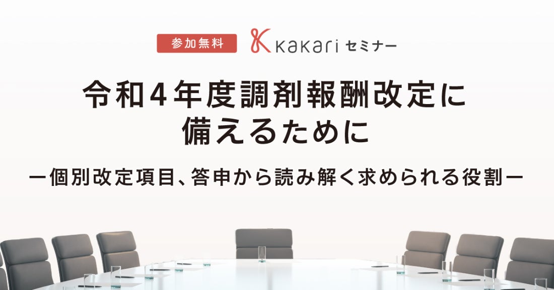 直近1,000人以上が参加した「kakari」の人気オンラインセミナー、最新情報を踏まえて追加開催「令和4年度調剤報酬改定に備えるために―個別改定項目、答申から読み解く求められる役割―」
