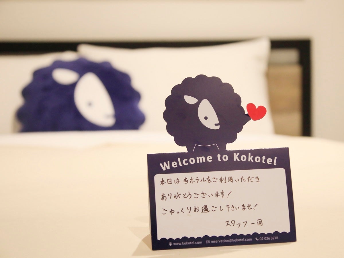 株式会社リロバケーションズは、タイで展開するホテルブランド「Kokotel」を運営する「Koko Global Hospitality (Thailand) Co., Ltd.」(以下「KGH社」)に対し、2019年より出資、2023年春より集客支援や従業員派遣等のサポートを実施してまいりました。今回、KGH社の更なる発展に寄与すべく、当社運営施設であるシンプレスト函館を「Kokotel」へとリブランドいたしました。シンプレスト函館は当社運営施設の中では数少ないビジネスホテルタイプの宿であり、「Kokotel」との親和性が高いことから選出、リブランドでは屋号変更の他、内装もワクワク感の詰まったKokotel仕様へと生まれ変わりました。7月のプレオープンを経て、この度「Kokotel」ブランドを象徴するモチーフの羊のオブジェが完成、正式にリブランドオープンの運びとなりました。