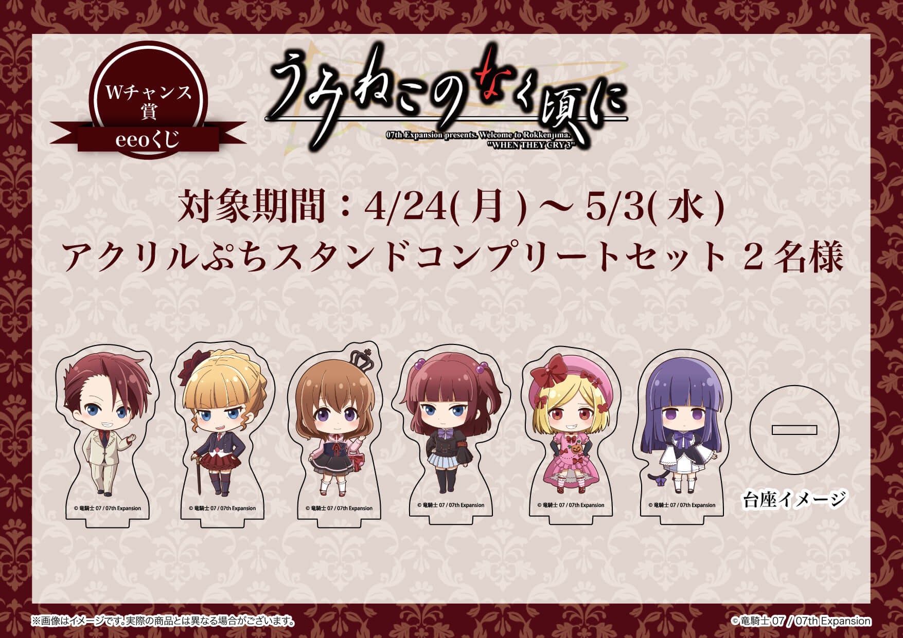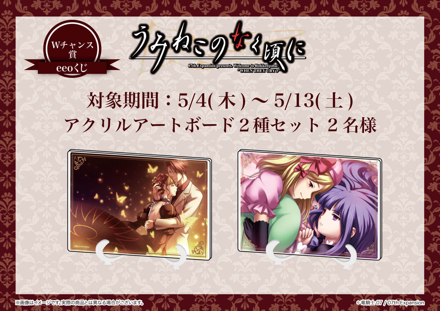 新規描き起こしミニキャライラストなどを使って、豪華景品がそろった『うみねこのなく頃に』の「eeoくじ」。景品をゲットして、あの感動をもう一度思い出してみましょう!