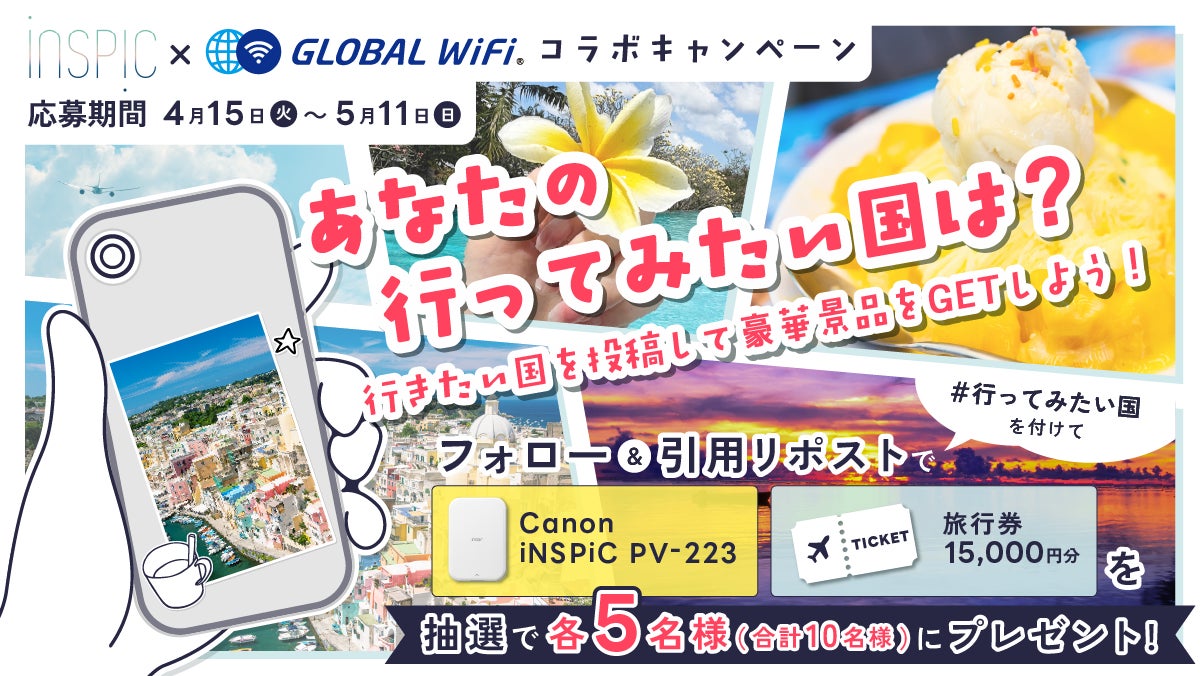 グローバルWiFi® × iNSPiC 行ってみたい国を投稿して豪華景品が当たるコラボキャンペーンを実施