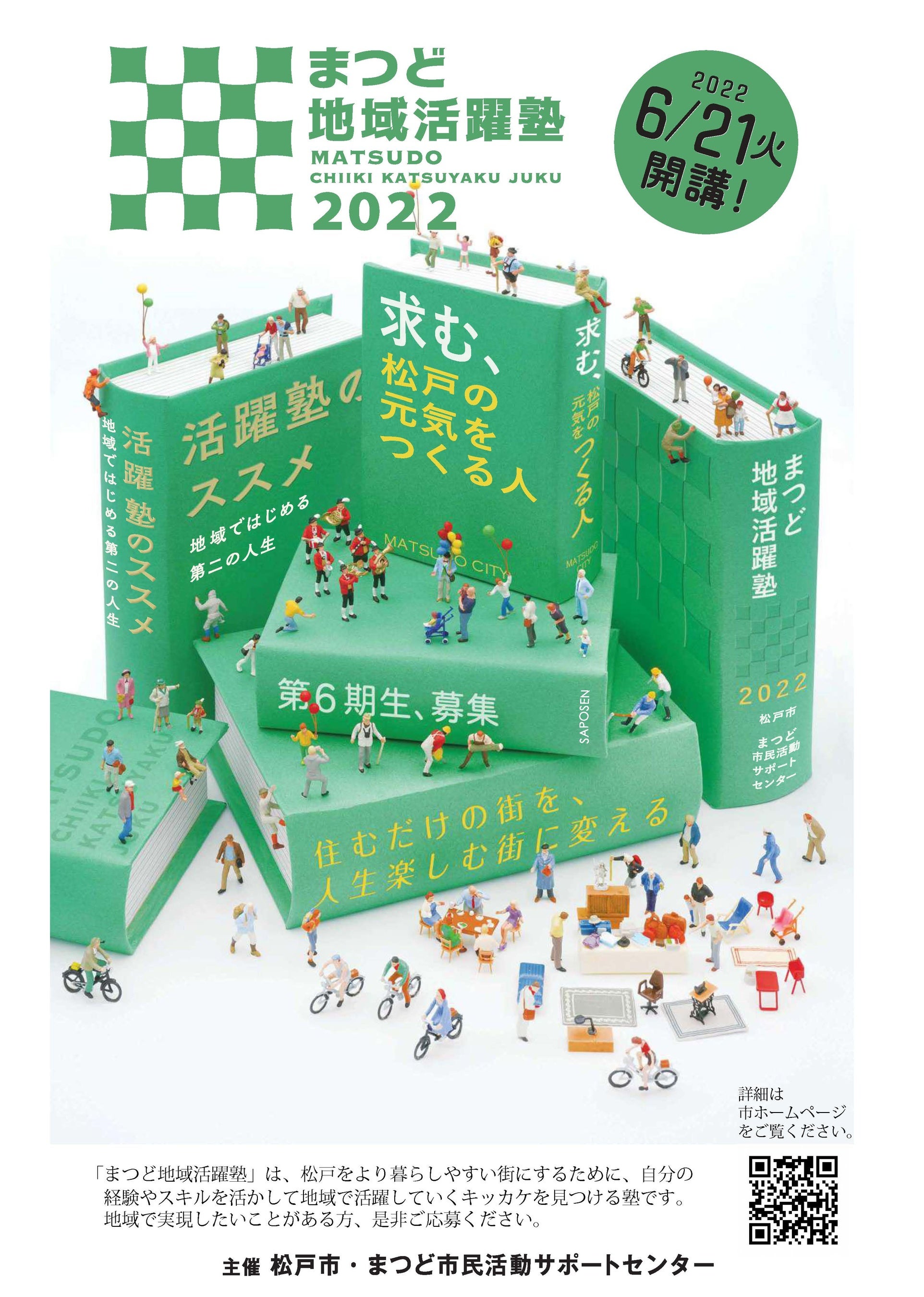 まつど地域活躍塾(主催:松戸市・まつど市民活動サポートセンター)とは、松戸をより暮らしやすく、魅力的な街にするために、地域で何かに取り組みたいと考えている方を応援するための塾です。