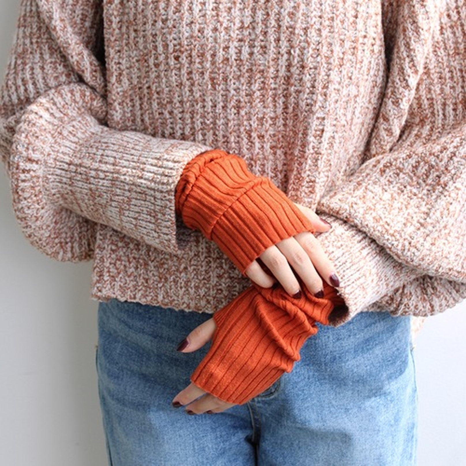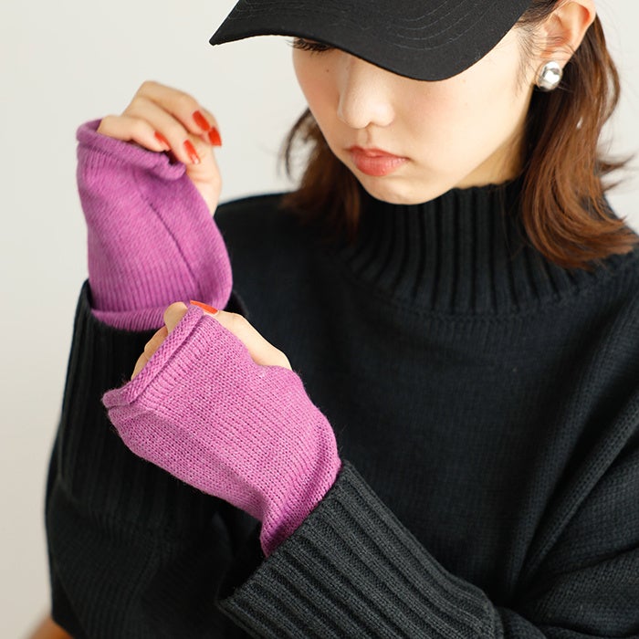 ■特長:細めのリブニットで編みたてたアームウォーマー。