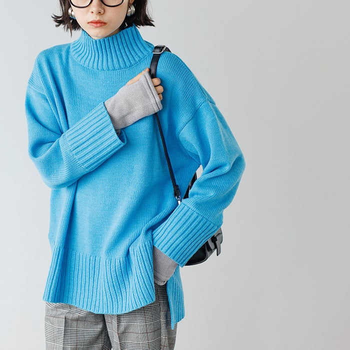 ■特長:ゆるシルエットのハイネックニットに、トレンドのアームウォーマーをドッキングしたアイテム。