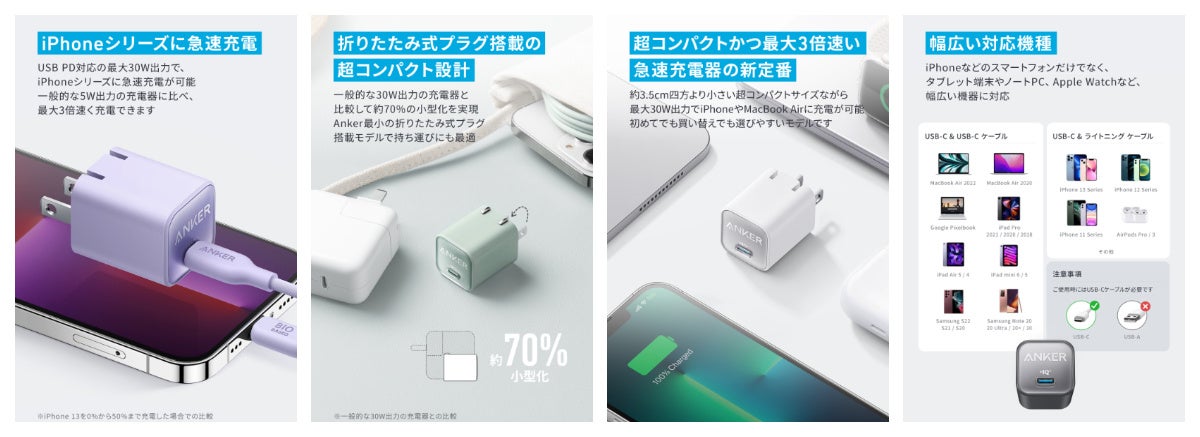 【Anker】iPhone 14シリーズに最適!コンパクトサイズのUSB急速充電器「Anker 511 Charger(Nano 3, 30W)」を含む計8製品を発表