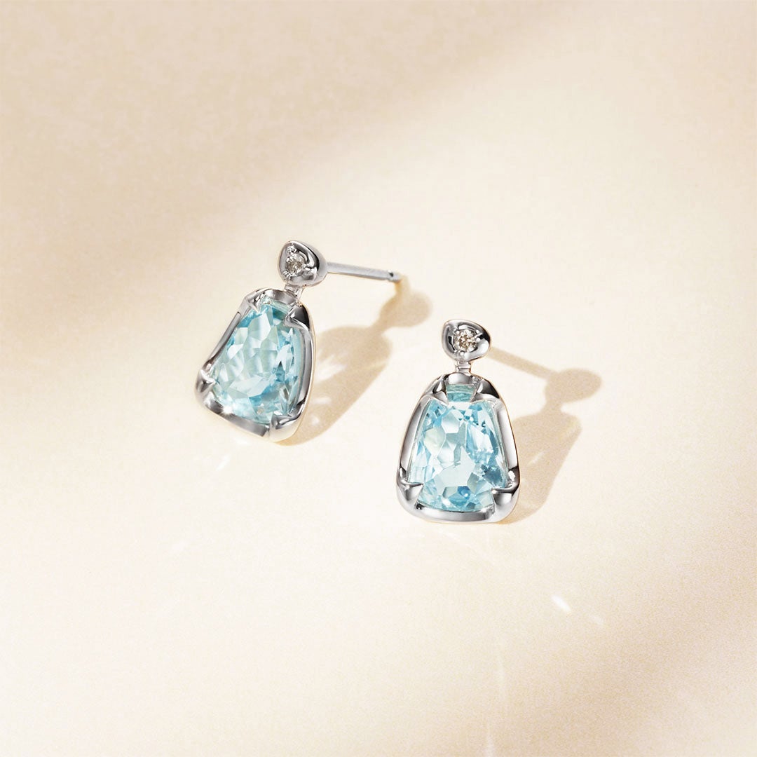 強い陽射しを受けてきらめくしずくを思わせるストーンのカッティングに、ゴールドカラーやシルバーカラーの地金のラインがモダンに寄り添うシリーズも。大粒のトパーズを配したネックレスやイヤーカフ、ピアスは、顔周りに涼やかな風を吹かせるような夏の季節にぴったりなデザインに。シンプルな装いにも、主役級の存在感をプラスします。