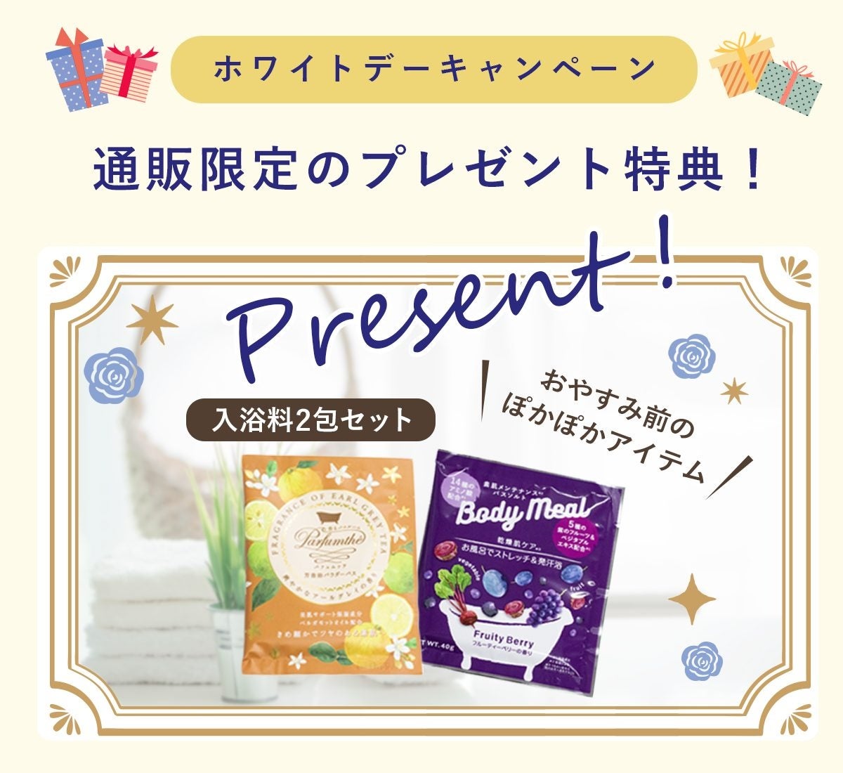 そこで、まくらぼでは、オンラインショップ限定で「ホワイトデーギフト」をご用意しました。これは、まくらぼで人気No.1のオーダーメイド枕ギフト券に特典として入浴剤がついたこの時期だけの特別なギフトです。