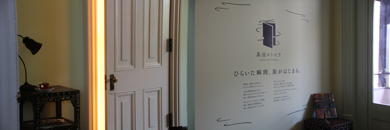 「異国のトビラをひらく」「日本のトビラをひらく」「未知のトビラをひらく」の3つのジャンルで本をセレクトしており、それぞれ異人館と歴史的につながりの深い国々の本をはじめ、異国情緒を味わえる本や、外国人観光客に日本の文化・歴史を発信する本のほか、音楽やファッション、パンなど、新たな興味・関心を呼び起こす本を取り揃えています。