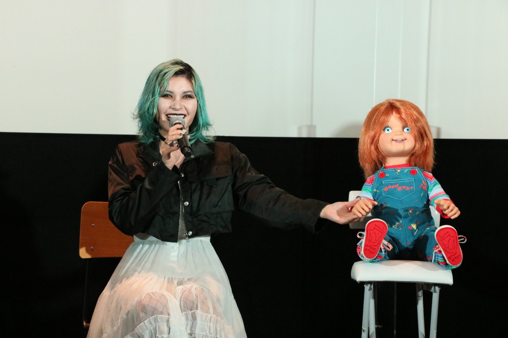 配信を記念して、ホラー好きとしても名高く、本作の予告編のナレーションを担当したファイルーズあいさん、“チャッキーちゃん”ことお笑いコンビ・ぽんぽこの高木ひとみ〇さん、チャッキー人形をお迎えし、配信を直前に控えた6月22日(水)に第一話先行上映会&トークイベントを開催。『チャイルド・プレイ』シリーズをけん引してきた“チャッキー”の魅力や、本作の見どころについて語り、さらにはチャッキー人形への生吹き替えまで実現し、会場を大いに盛り上げました。