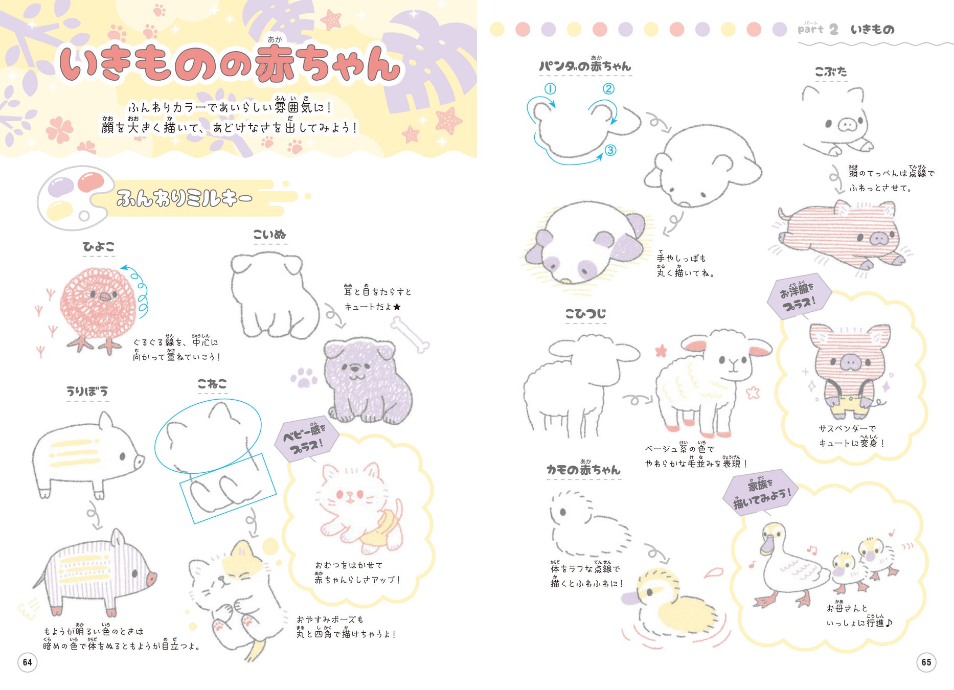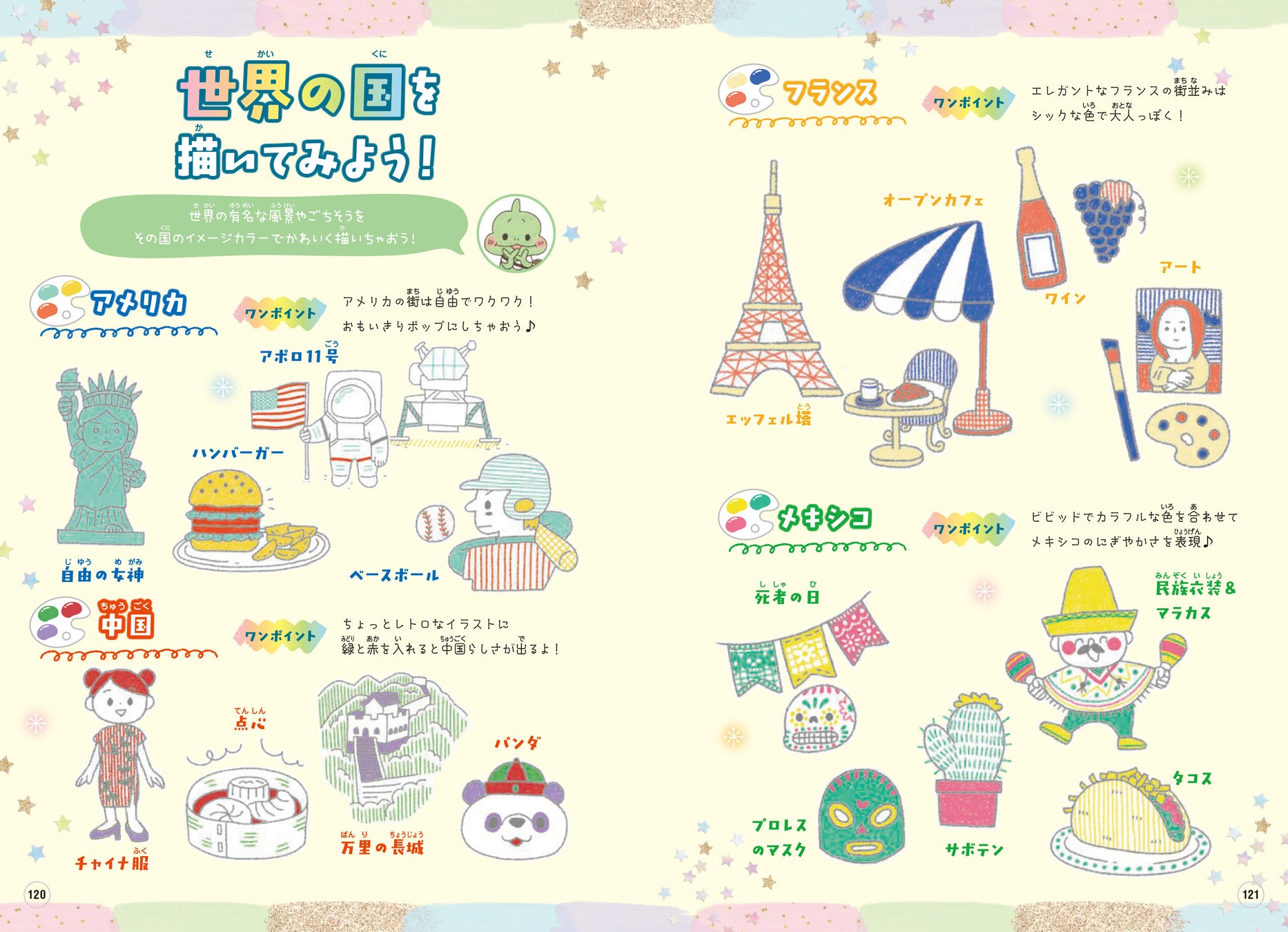 イラストを描くのが好きなお子さまはもちろん、ちょこっとしたイラストを描けるようになりたい方、色使いが苦手な方、センスのあるイラストを描きたい方にもおすすめの一冊です。