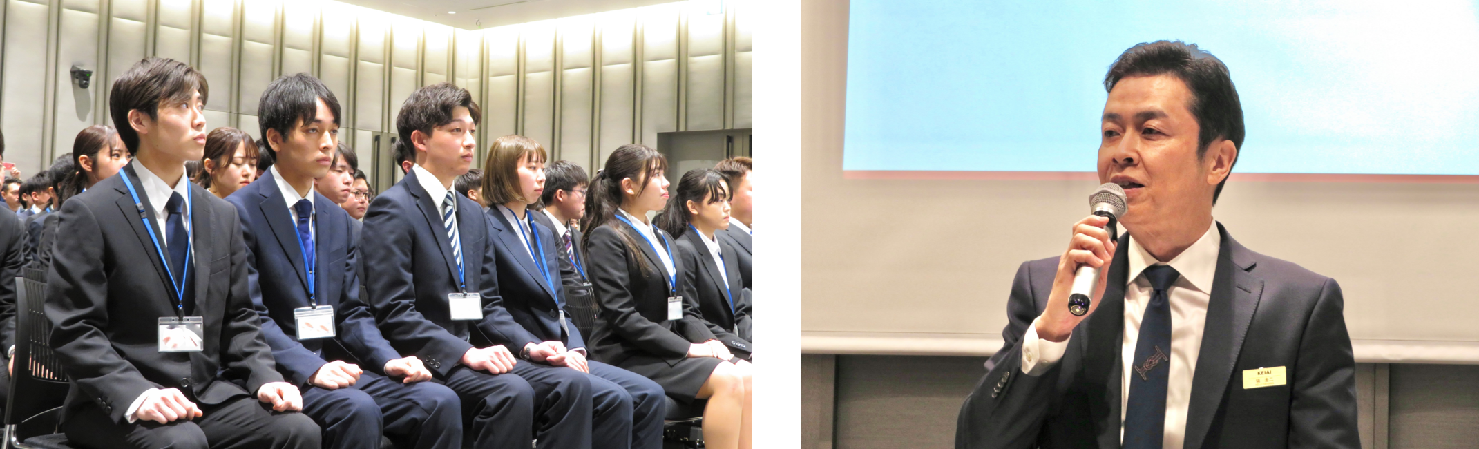 このようにマスクを外せてしっかりと皆様の表情を見て話ができるのはコロナ禍以前の生活が少しずつ戻ってきたということであり大変嬉しく思います。そして皆様は今日から当社の正式な社員です。