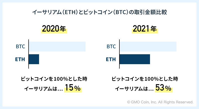 暗号資産取引のGMOコイン:イーサリアム(ETH)の取引動向をビットコイン(BTC)との比較でご紹介