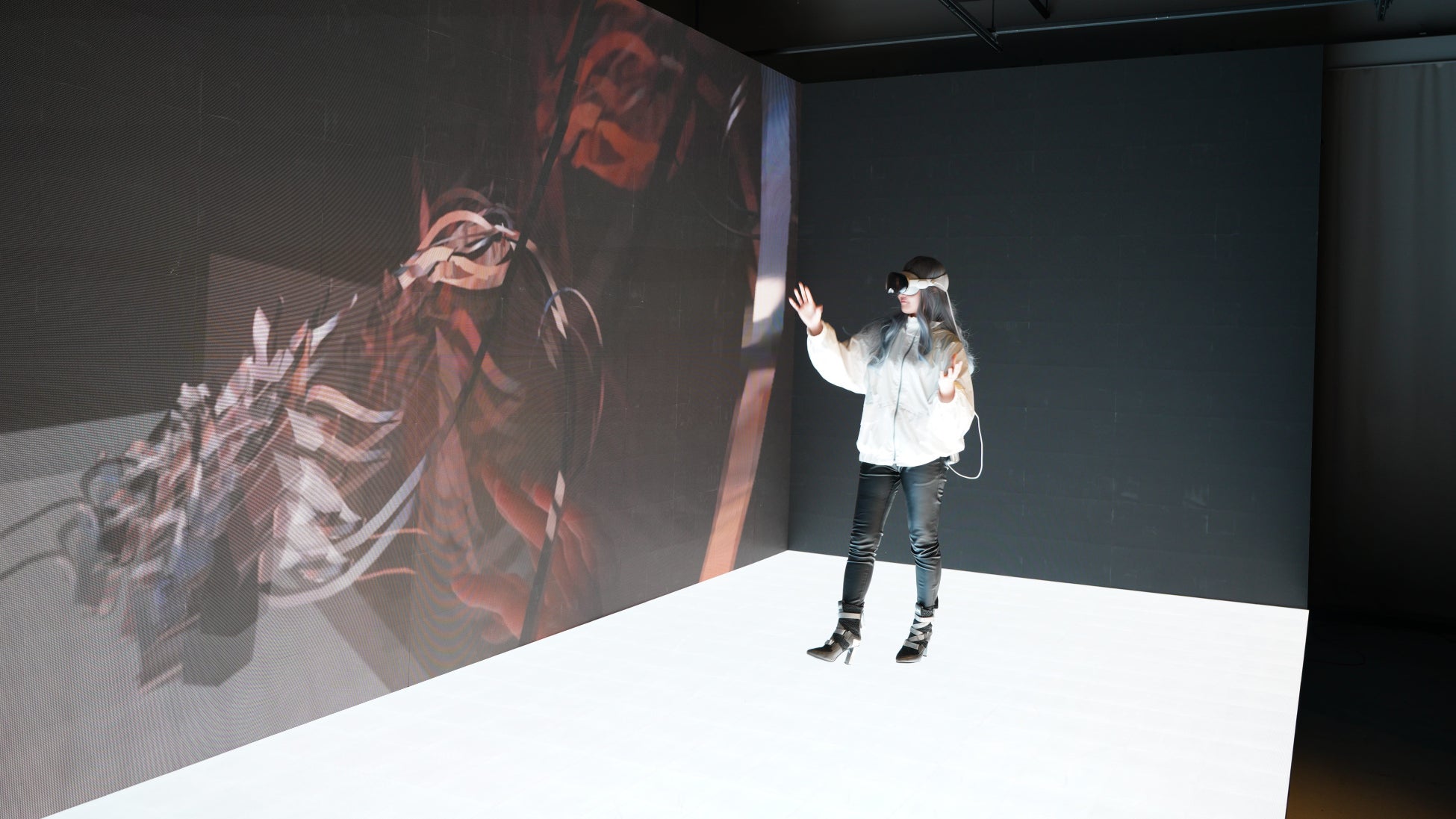 今回のYOKOHAMA STUDIOでの撮影では、Apple Vision Proを装着した視点をLEDビジョンに映し出しました。LEDビジョンはリアルタイム映像の放映も可能なため、今回のようなOBSを利用した撮影も問題なく行えます。