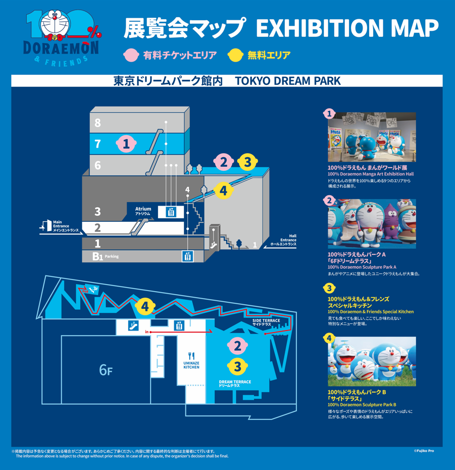『100%ドラえもん&フレンズ in 東京』は、3つの有料エリアと3つの無料エリアの計6エリアで構成され、それぞれが異なる魅力を持っており、見どころ満載のイベントとなっています。