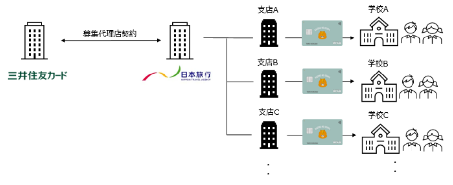 日本旅行が、海外への修学旅行を実施する中学校や高等学校に対し、三井住友カードが提供するVisaプリペイドカード「かぞくのおさいふ」を推奨カードとしてご提案します。