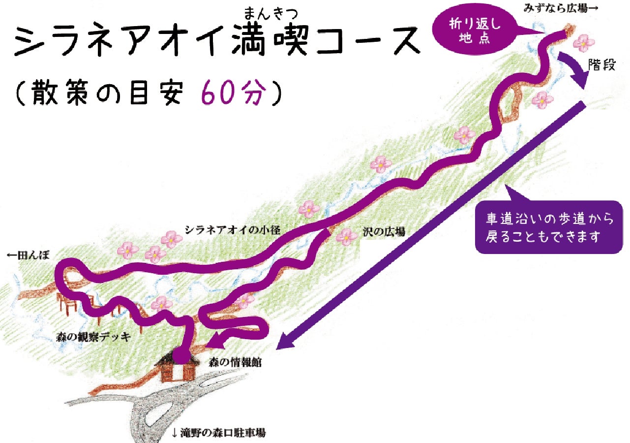 メインの群落がある「シラネアオイの小径」をめぐるコース。