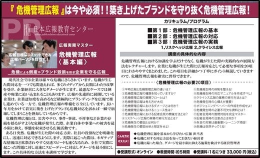 【日本広報教育センター発表】2023年問い合わせ件数No1の講座は「危機管理広報」 今年は企業の不祥事が多く危機に対する企業防衛の一貫で広報対策への関心が高まる!この人気講座の説明会を開催します