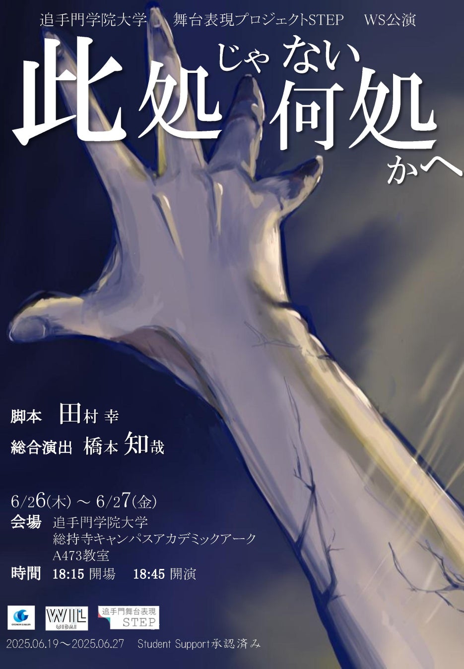 身近にありながら、気付けていなかったり、深く知らなかったりする社会問題を題材とした表現活動を行う追手門学院大学(略称:追大、大阪府茨木市、学長:真銅正宏)の舞台表現プロジェクト(通称:STEP)が、「死」に向き合う若者たちの姿を描いた演劇「此処じゃない何処かへ」を6月26日(木)、27日(金)に茨木総持寺キャンパスで公演します。