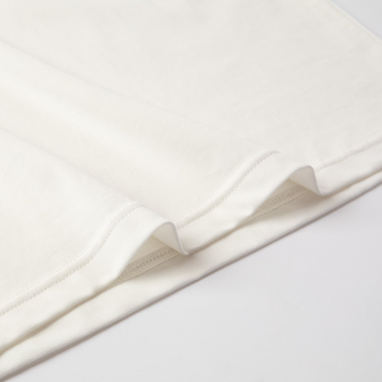 世界最高峰の綿花を用いた糸を高密度に編み上げ、滑らかな肌触りを実現。毛羽がないので光沢感があり、綺麗目な印象に。