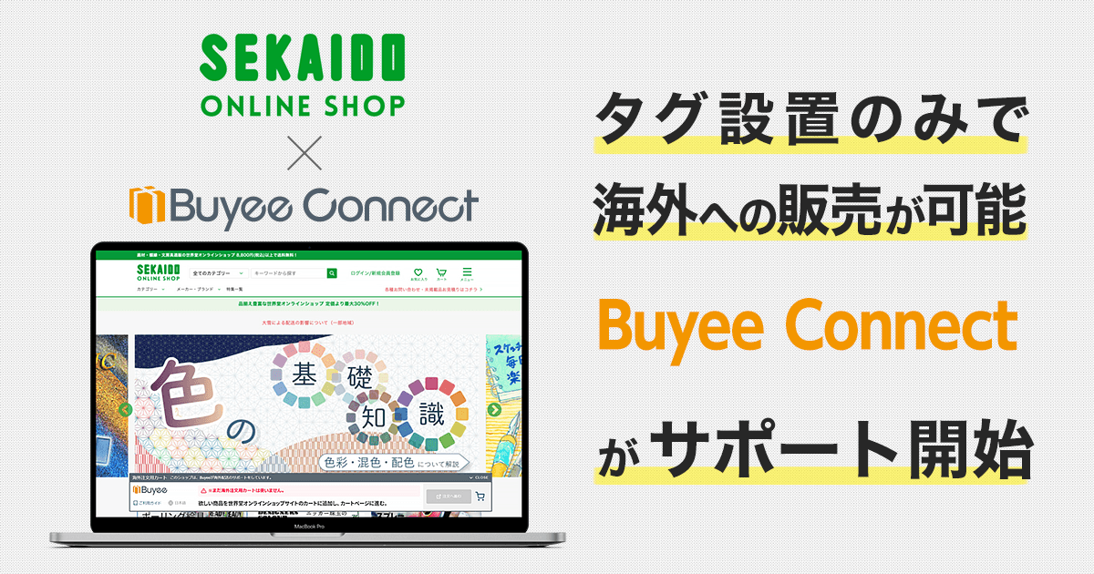 海外のお客様の購入利便性を向上させるため、世界堂は「Buyee Connect」を導入し、「世界堂」上に新たに海外からのアクセス者に向けた専用カートを開設いたします。「Buyee Connect (https://beecruise.co.jp/infra/buyeeconnect/)」は、タグ設置のみで自社ECサイト上に海外専用カートを簡易に開設することができ、世界118ヵ国/エリアのお客様がシームレスに購入できるサービスです。「Buyee Connect」の導入により、ECサイト事業者様は国内ECのオペレーションを変更せずに越境EC対応が可能で、多言語CS対応、海外配送、決済などの必要な機能は全て「Buyee」が対応します。