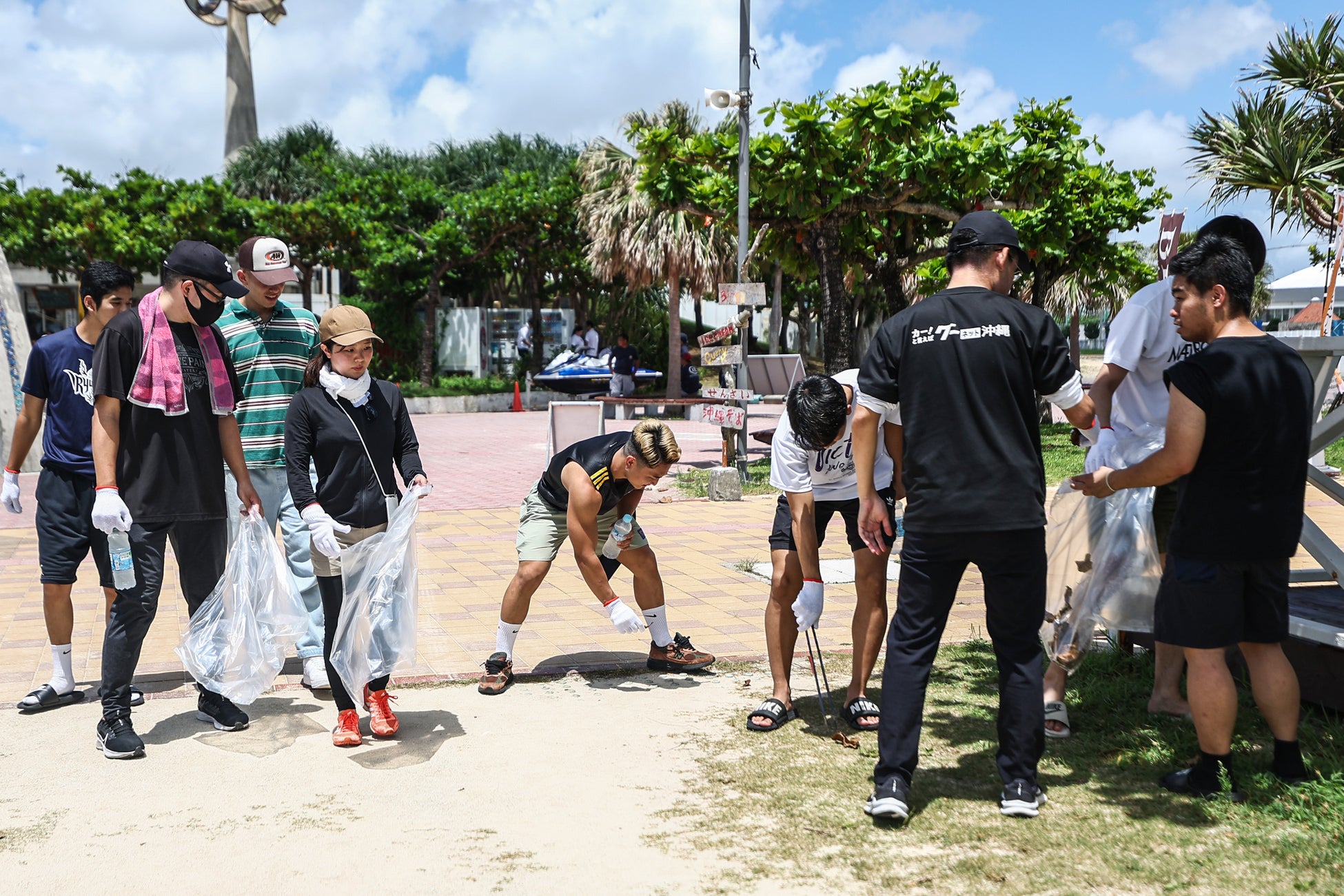 当日は天候にも恵まれ、SOLA学園の生徒の皆さまや、その他ご参加された皆さまと交流を図りながら、ビーチに漂着していたプラスチック、周辺に捨てられたゴミや枯れ葉を拾い集め、美化活動に取り組みました。