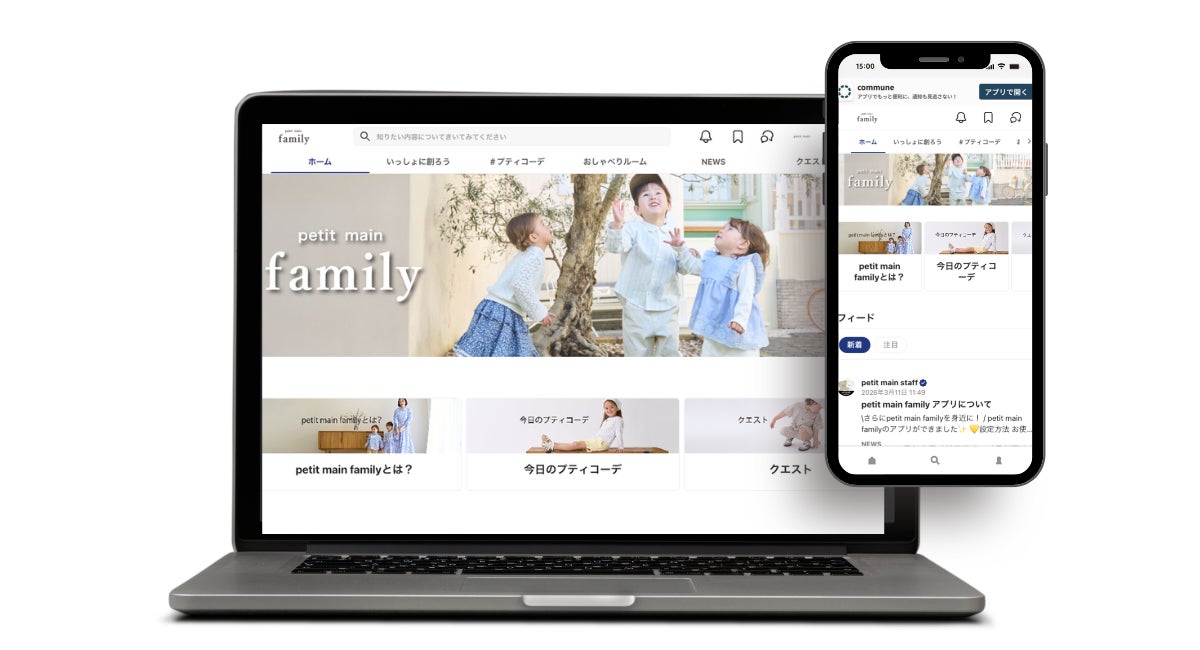 相互交流で信頼を育む「Commune(コミューン)」を提供するコミューン株式会社は、株式会社ナルミヤ・インターナショナルが展開する子ども服ブランド「petit main(プティマイン)」の公式ファンコミュニティ「petit main family」にCommuneが採用されたことをお知らせいたします。