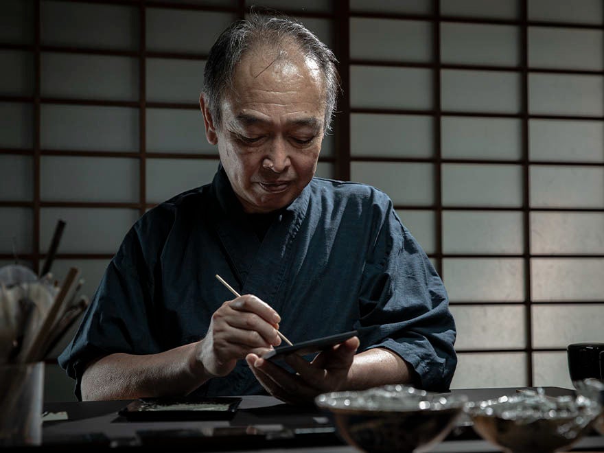 京都の「嵯峨螺鈿・野村」の3代目。20歳で家業の仕事へ。漆の技術を学び、塗から加飾(螺鈿・蒔絵)全ての工程を一人で行う伝統工芸士。2018年、独楽文様棗が「日本伝統工芸士会 会長賞」受賞。2019年、「京の名匠」表彰。フランス、「メゾンエオブジェ」にアートパネルやインテリアミラー等5回出展、高い評価を受けている。