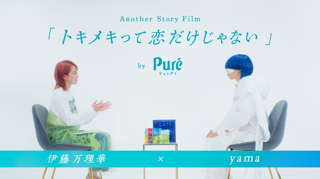 TV放送に合わせて公開されるアナザーストーリーフィルムでは、CMに出演いただいた伊藤万理華さんと、CM楽曲を書き下ろしていただいたyamaさんが初対面、初対談します。ピュレグミをきっかけに出会った2人が、CM楽曲の「いぶき」やCMでのダンスなどCM撮影に関して話したのち、最後はCMのテーマである「トキメキ」について語り合う内容になっています。ドキドキ、喜び、尊敬、共感・・・ 「トキメキ」を通じて変化する2人の距離感の変化をお楽しみください。