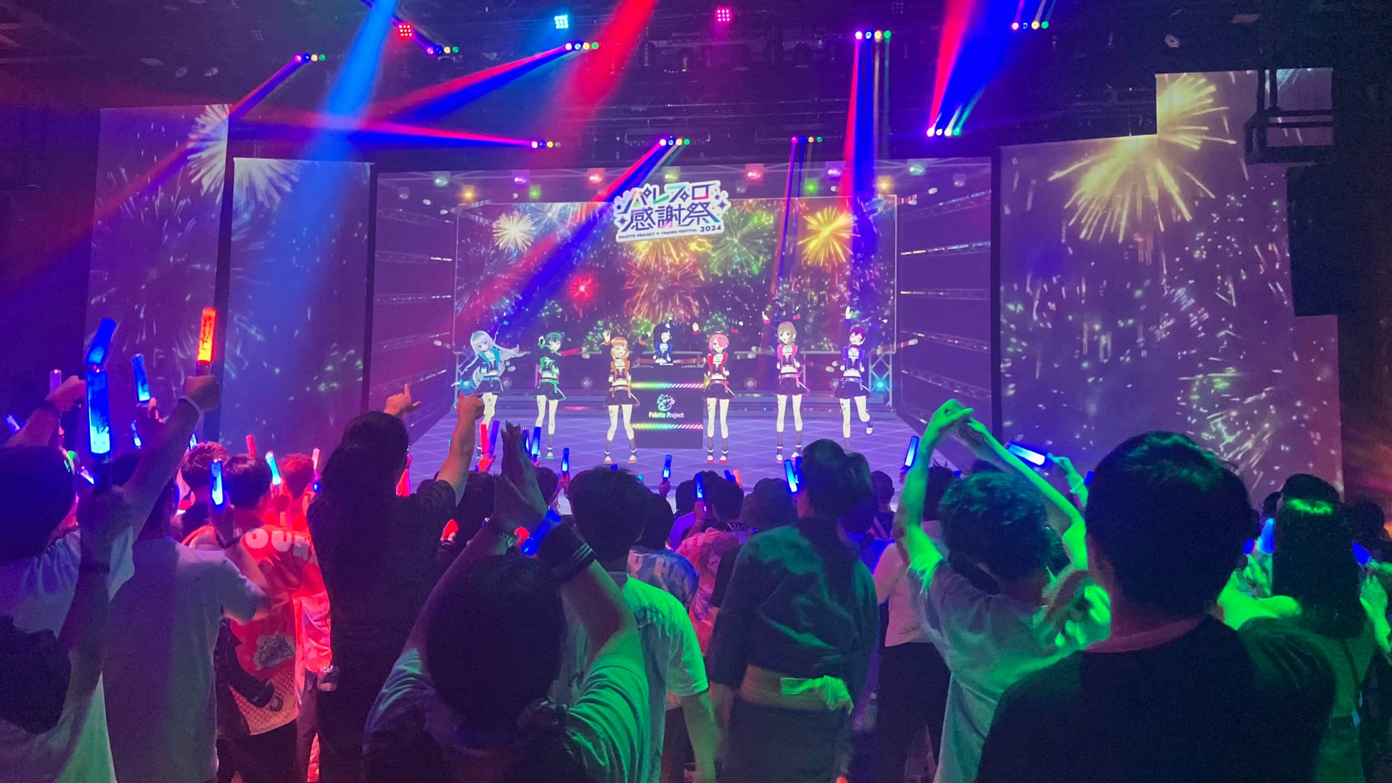 あたりが暗くなってきた頃、舞台は神田明神ホールへと移り、訪れた観客たちが次々に7色の光を灯し始める。BGMがフェードアウトし、「パレプロ感謝祭スタートです!」の掛け声とともに、Palette Projectのメンバーがステージに登場。イベントの開幕を心待ちにしていた観客から大きな歓声が上がった。