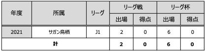 J1リーグ 2試合(0得点) / リーグ杯 6試合(0得点)