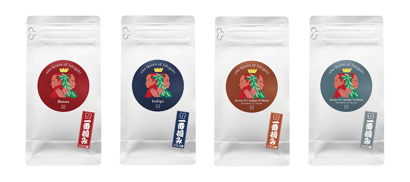 生産を手がけているのは玉城享子氏。石垣の太陽を浴びて育ったヘナをすべて手摘みし、目で見て小枝を取り除いて純度の高い粉末に加工。同じ畑で育てているインディゴとブレンドすることにより、染め上がりのカラーリングに複数のバリエーションを用意しました。
