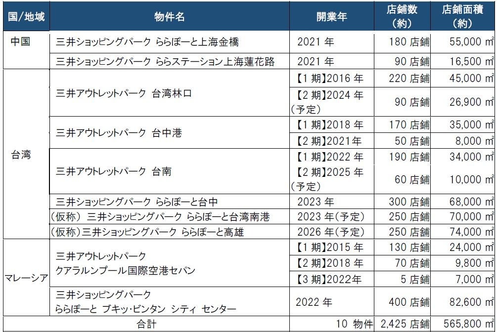 三井不動産が海外で展開する商業施設(2022年12月現在)