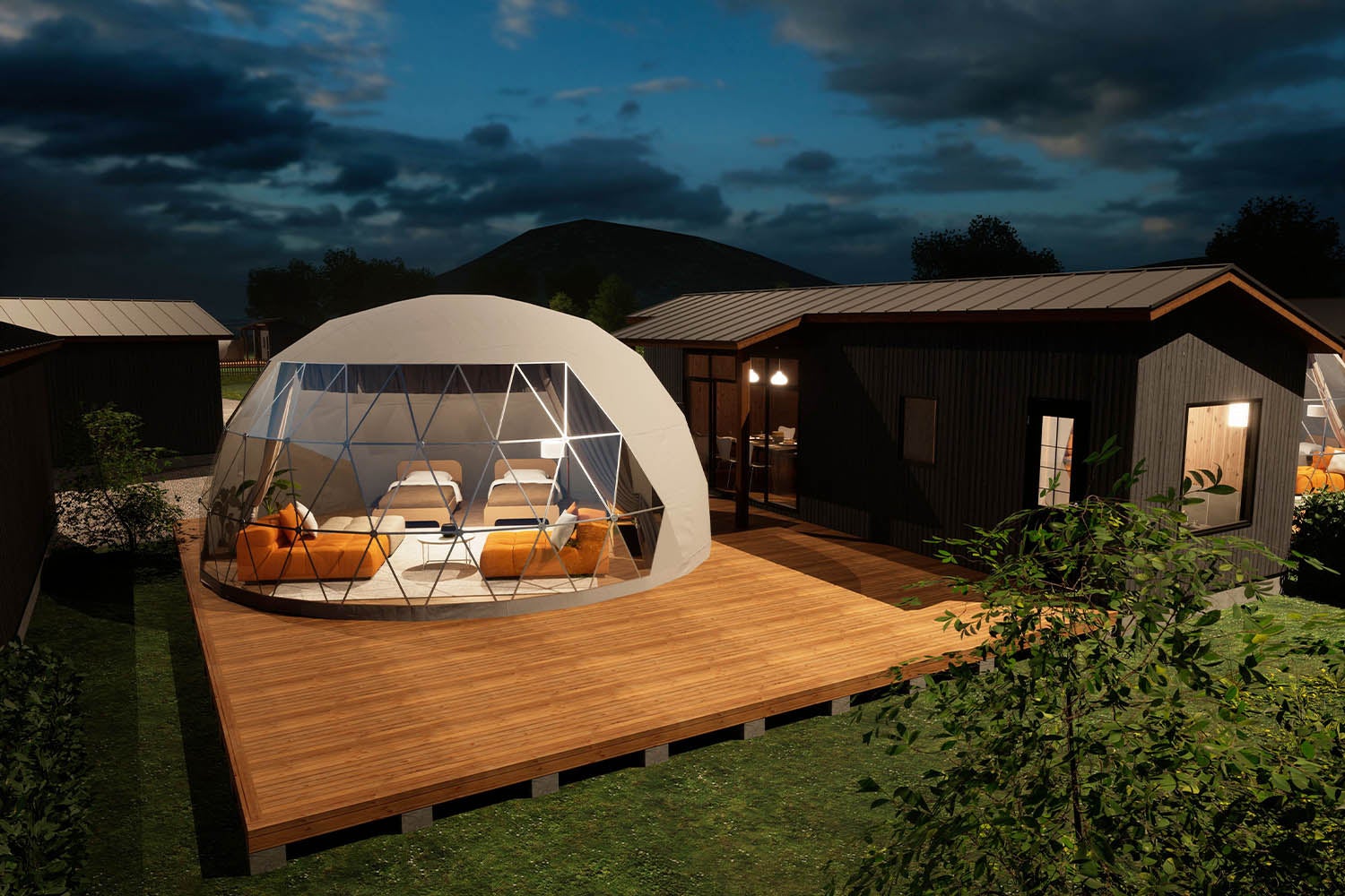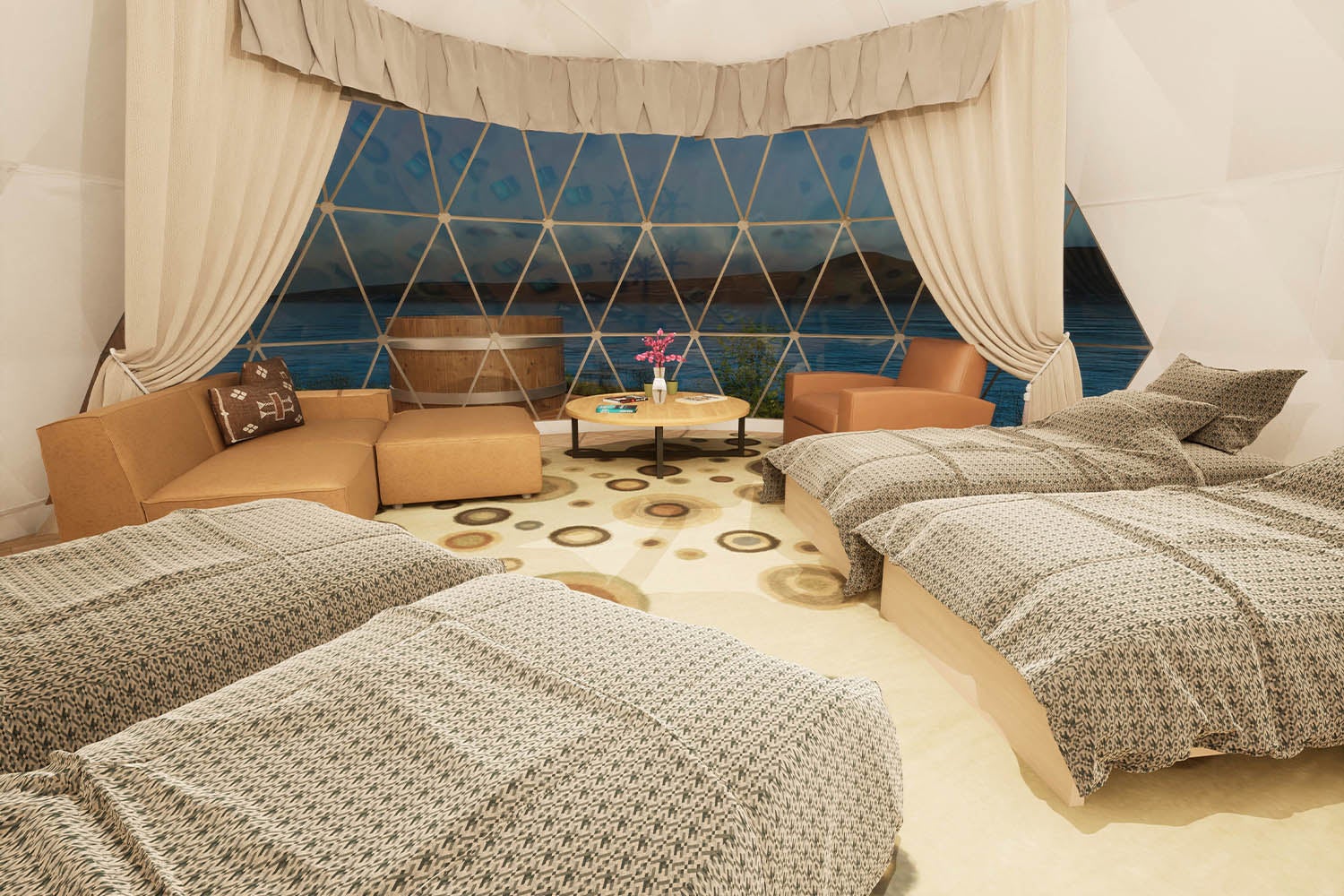 ※鳥取県初、全室源泉かけ流し温泉付き:鳥取のドーム型グランピング施設で初(2024年7月時点 自社調べ)