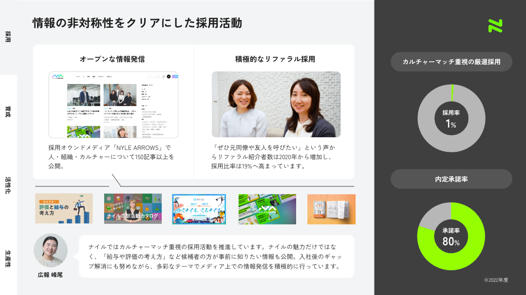 本資料では、ナイルの現在の組織に関する定量・定性のデータと、今後と課題と方針についても公開しています。