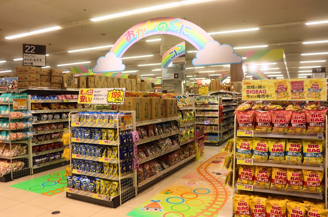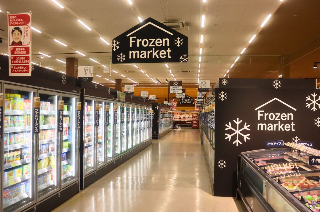 冷凍食品コーナーでは、即食系のワンプレート商品の品揃えを強化したほか、便利な冷凍野菜を多く取り揃えております。また、お菓子コーナーでは子育てファミリー世帯が多いことも踏まえ、お子様も一緒に買い物に行きたくなるよう「おかしのくに」として駄菓子やグミなどを集合展開いたします。