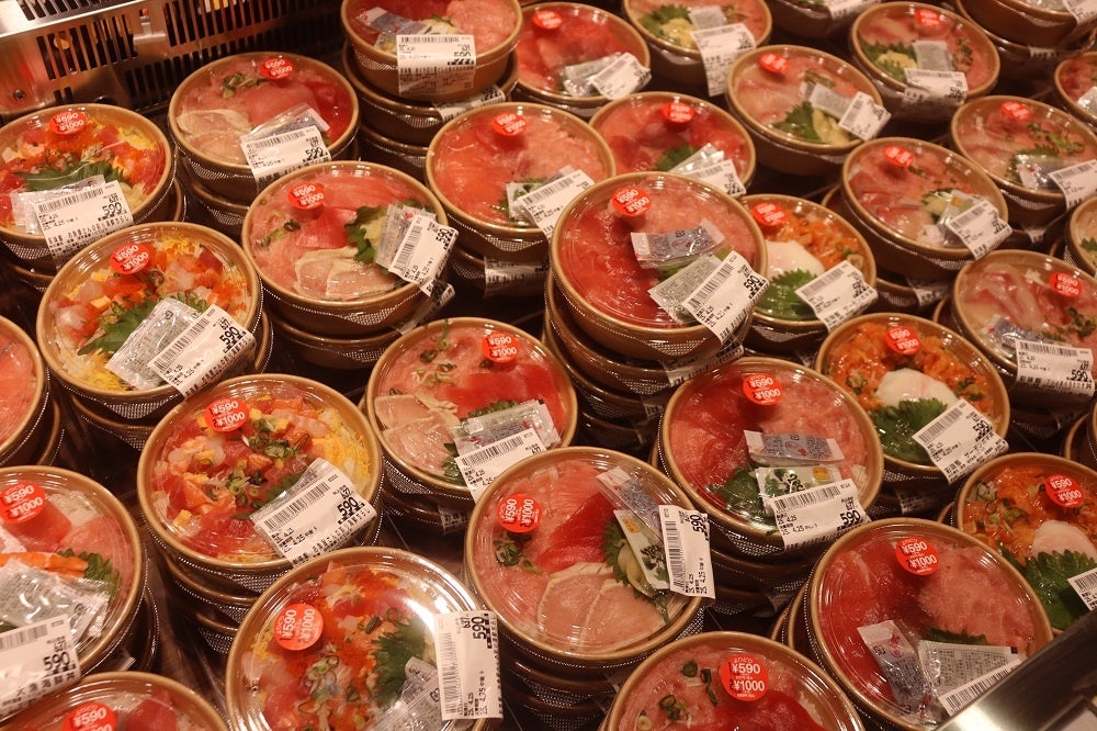 千葉県の様々な漁港から新鮮な丸魚が届きます。また、様々な海鮮を楽しめる彩味鮨の丼シリーズや、ご飯とおかずの好きな組み合わせが楽しめる「のっけご飯」シリーズなど、暑い今の時期に食べたくなるお弁当を豊富にそろえています。