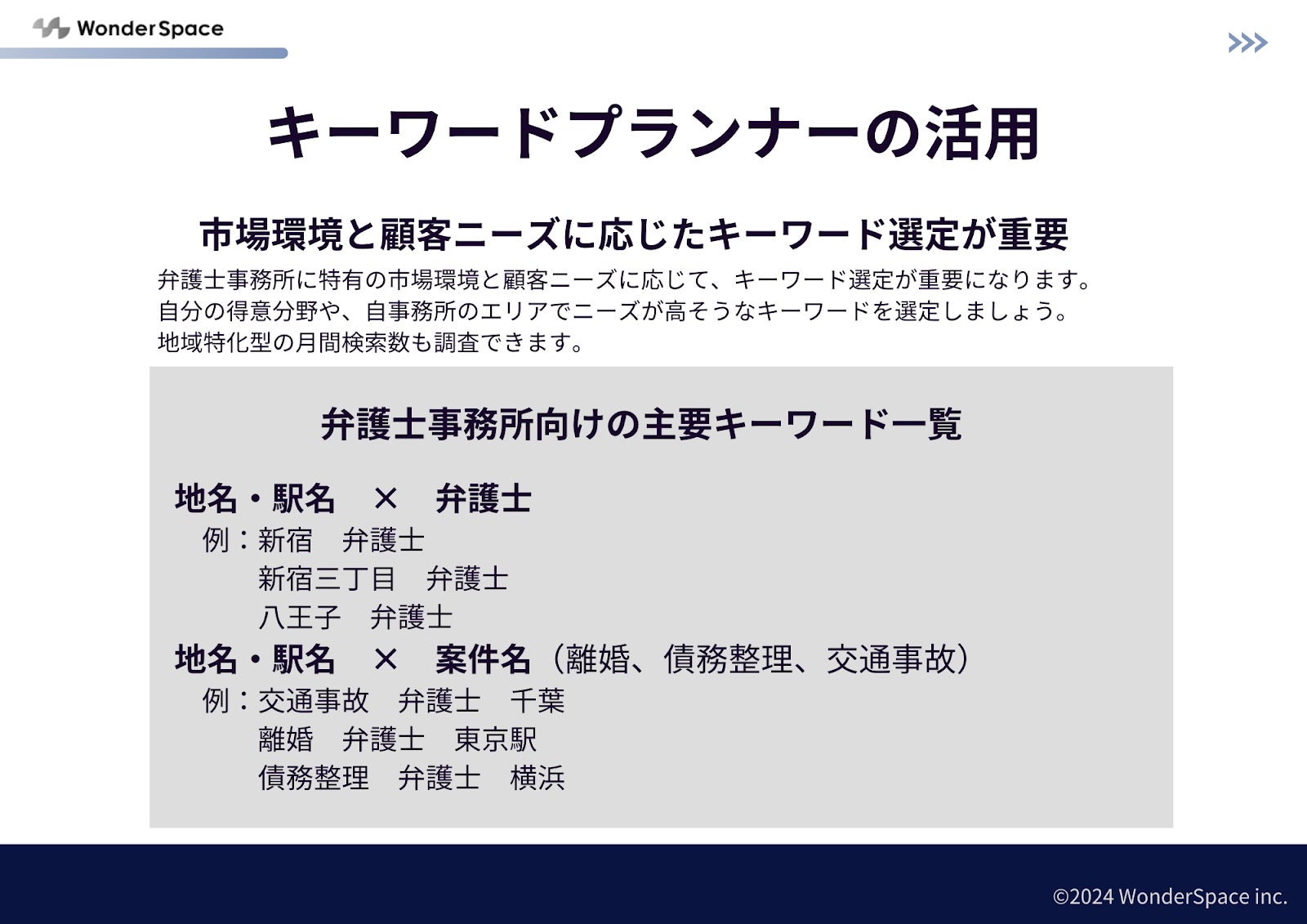 顧客ニーズに合わせたキーワード選定が重要になります。