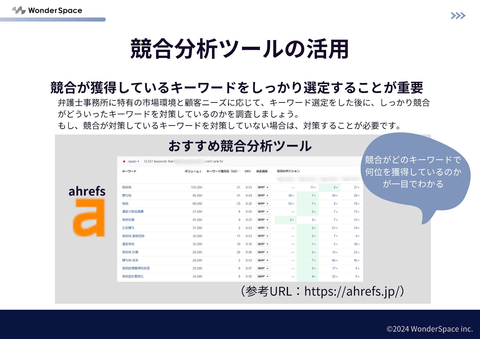 競合と差別化を図るためのキーワード選定に役立つ内容です。