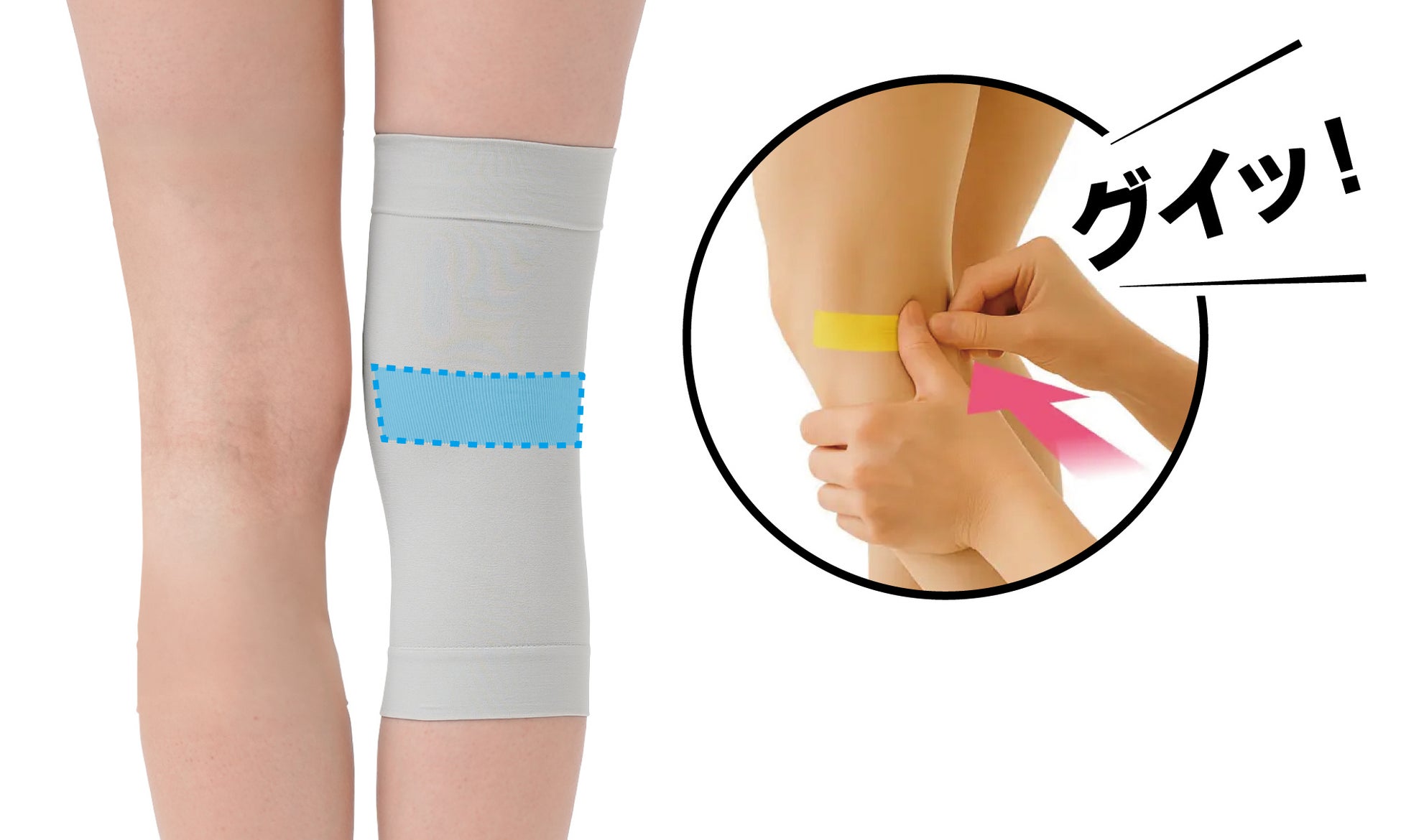 ひざ裏周辺の筋肉にサポートラインを配置することでひざ裏に適度な圧力が加わり、ひざの曲げ伸ばしがスムーズに。長時間歩行もラクになります。