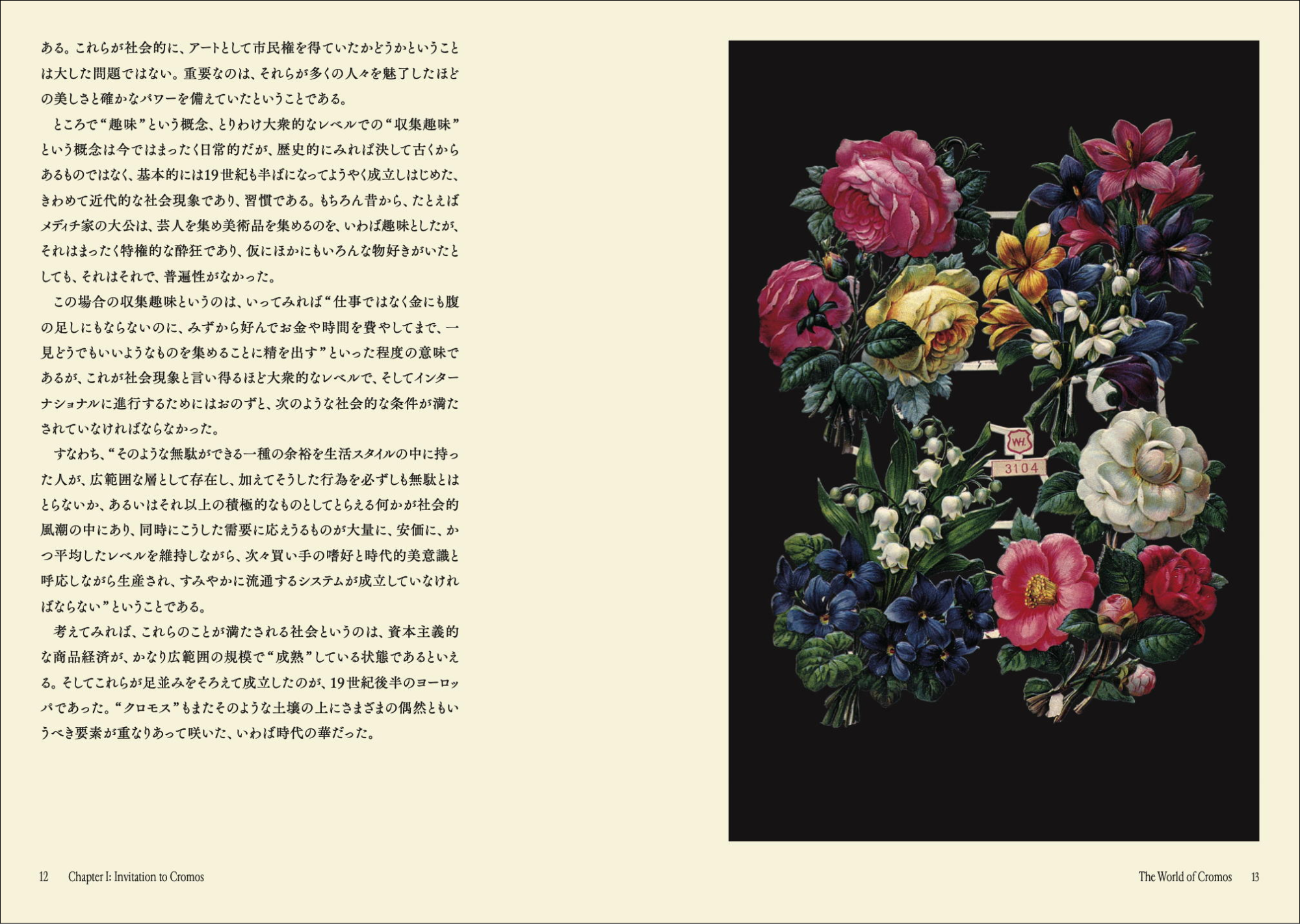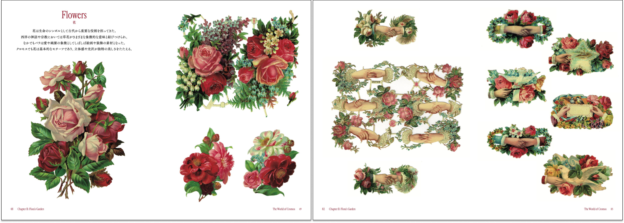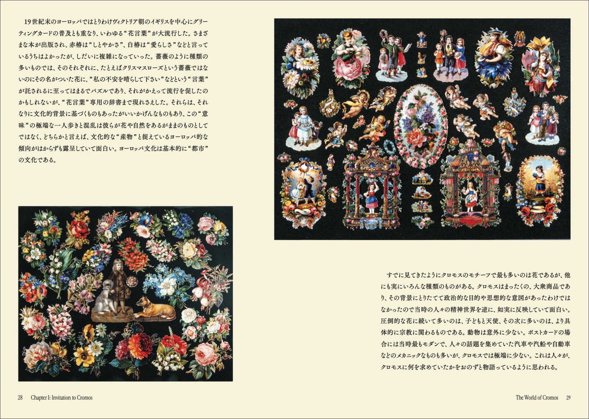 第1章 クロモスへの招待(伝説の花クロモス/クロモス、その小さな姿に/クロモスの美/クロモスの歴史と展開)|第2章 フローラの庭(花/ブーケ/手とメッセージ/鳥/少年と少女/妖精)|第3章 民衆と社会(子どもたち/女性/仕事と職業/歴史と地域)|第4章 世界図会(信仰と祝祭/果物/犬と猫/擬人化/生物/風景と物語)|第5章 オブジェとしてのクロモス(ポップアップカード/ミニアチュール/便箋/手作りアルバム/写真アルバムとクロモス)|ジョアキン・ゴメス略歴/あとがき/新たな出版に寄せて/著者略歴