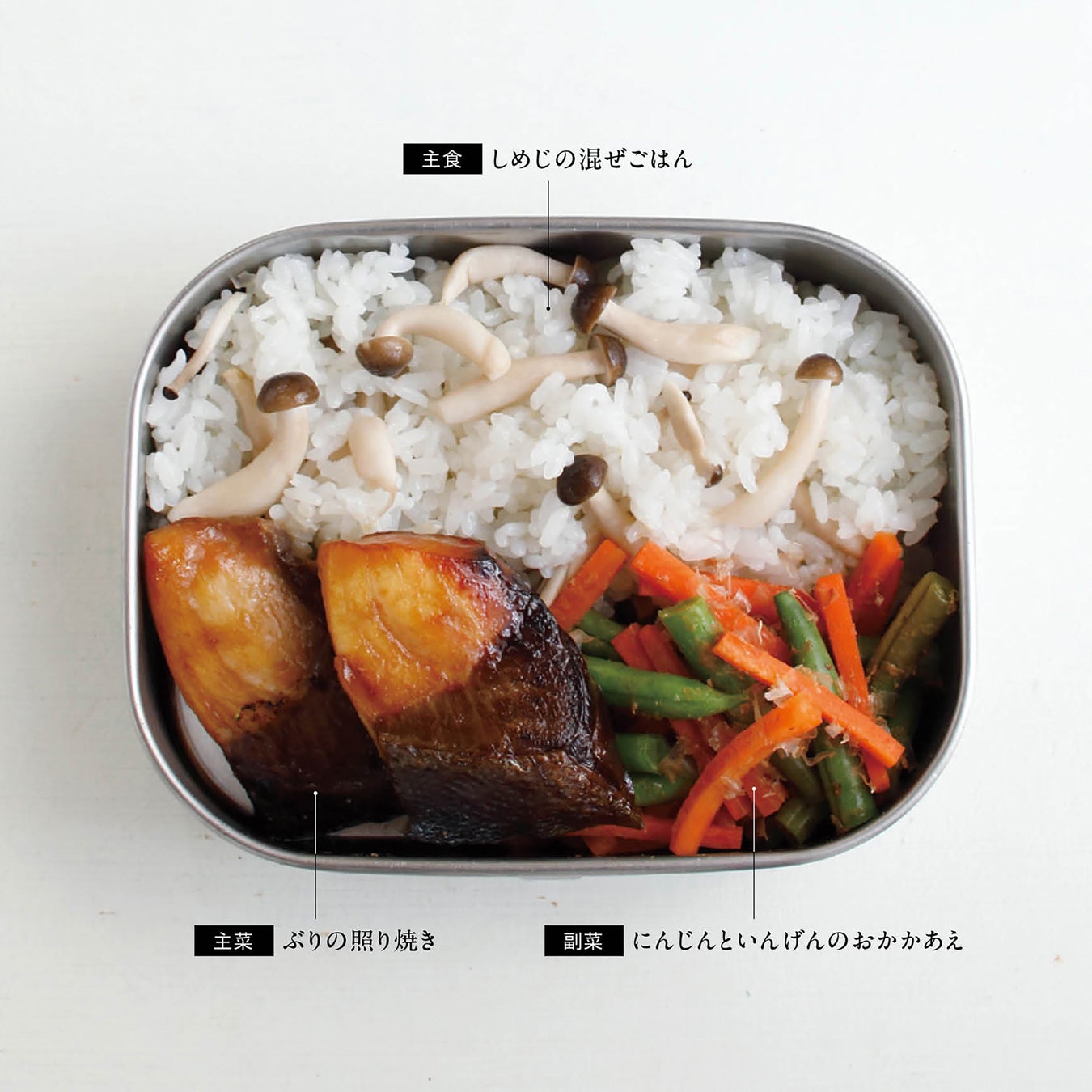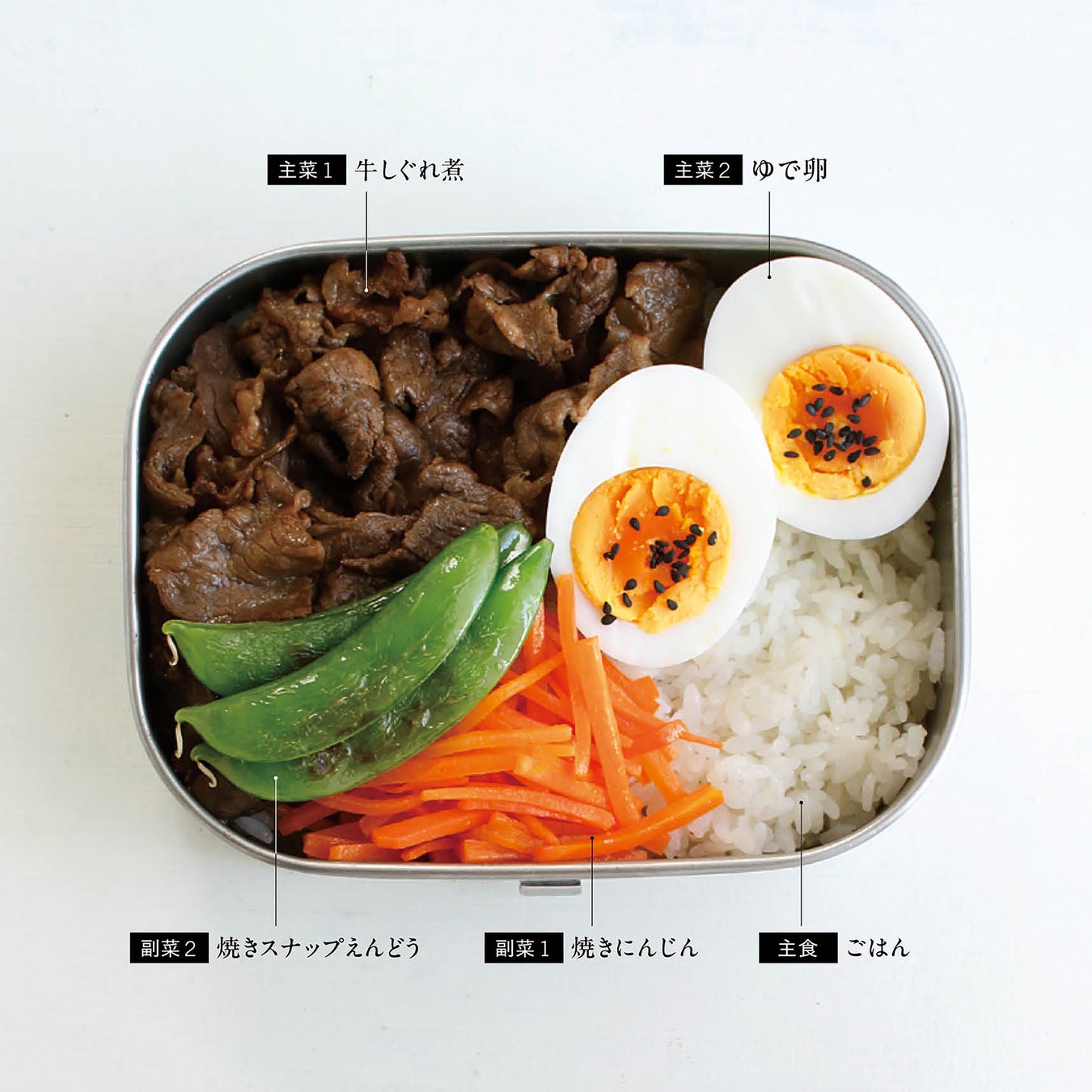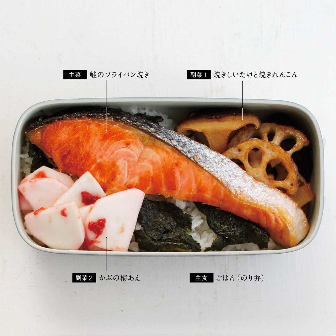 ダンノ式じみ弁当は朝起きて冷蔵庫を開けることからスタート! 主菜の肉か魚どちらかを1種、野菜を2~3種、フライパンで焼くだけ。基本はそれにごはんで完成。主菜の味つけはしょうゆ、みそ、塩のどれか、副菜は塩のみ。季節ごとに冷蔵庫に入っている魚や野菜を使えば食材や味は変化するので飽きません。栄養バランスは1日トータルで考えて、たんぱく質を補うなら卵焼きもいいけれどゆで卵だって大活躍。冷蔵庫に作り置きがなくてもなんとかなるのがダンノ式です。