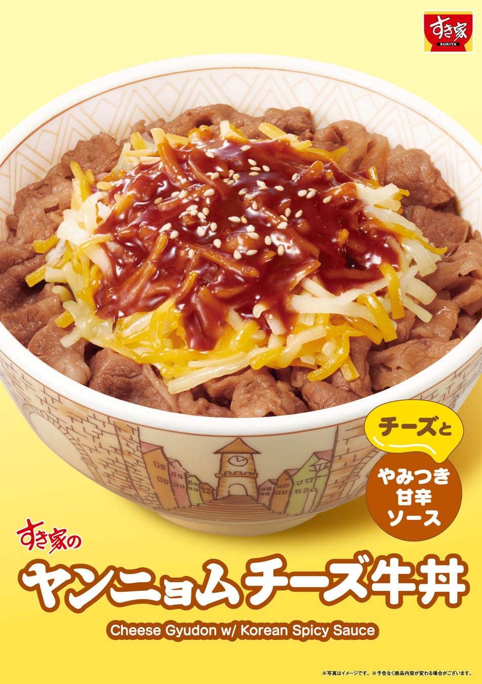 ぜひこの機会に、お近くのすき家やお家で、新商品「ヤンニョムチーズ牛丼」をお試しください。