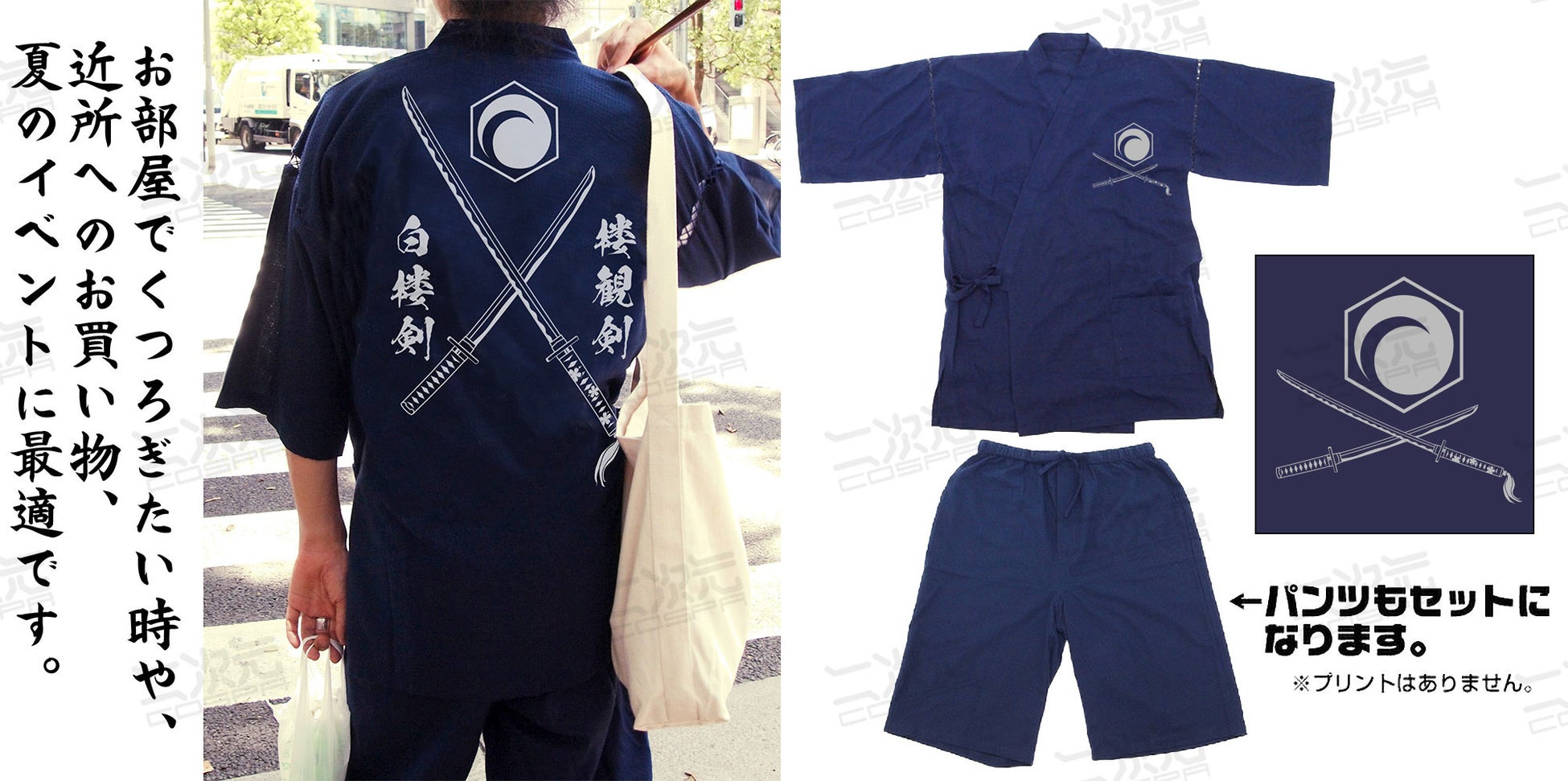 魂魄妖夢の愛刀、白楼剣・楼観剣をイメージしてデザインした甚平