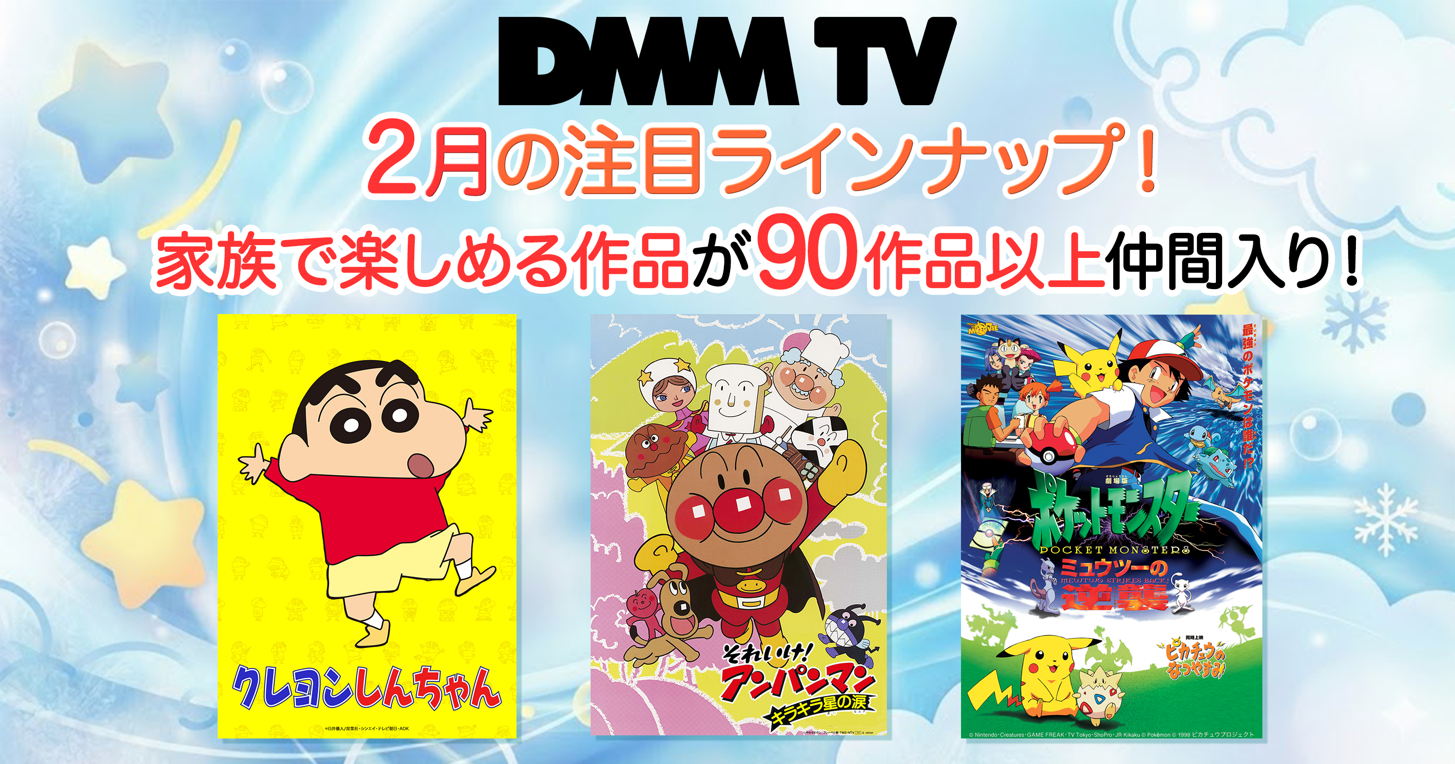 合同会社DMM.com(本社:東京都港区、PFカンパニーCEO:村中悠介、以下DMM)が運営するDMMの総合動画配信サービス「DMM TV」は、2026年2月より、国民的人気アニメ『クレヨンしんちゃん』の配信を開始いたしました。あわせて、『それいけ!アンパンマン』および『ポケットモンスター』の劇場版や短編、OVA作品など90作品を一挙にラインナップに追加いたしました。