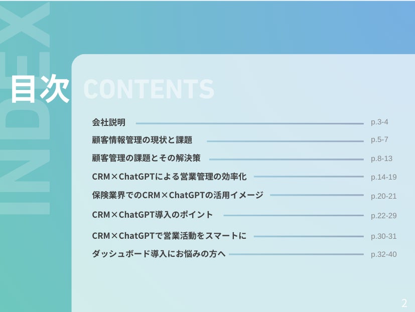 株式会社ベクトル(本社:東京都港区、代表取締役会長兼社長:西江 肇司、東証プライム:6058)の子会社であるOwned株式会社(東京都品川区、代表取締役社長、石井翔、以下「当社」)は、保険業界向けに「CRM×ChatGPTで営業管理をする方法をまとめたレポート」の2025年3月版(全40ページ)を無料公開いたしました。