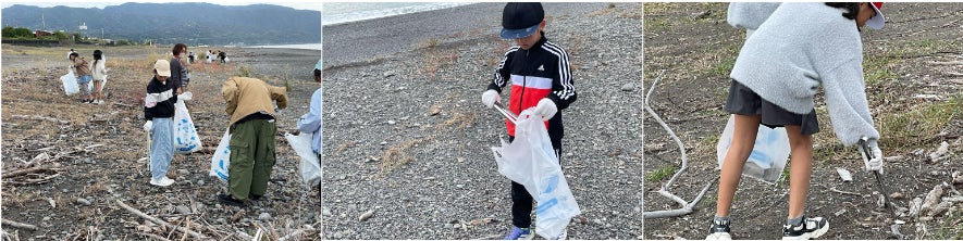 座学の後、ツーライスと生徒が一緒に授業で学んだ内容を実践するため、安芸市内の海岸で清掃活動を実施。子どもたちは、海岸に流れ着いたごみを回収し、海が抱える環境課題を体感しました。