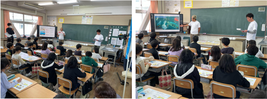 授業の最後には、講師から「今日お勉強したことを、ぜひ周りの人にも広めてください」というメッセージが送られました。子どもたちは、節電や節水などを行い、地球温暖化を食い止めたい、ごみをポイ捨てしない、清掃活動の輪を広げたいなどの感想が上がっていました。今回の出前授業と清掃活動は、児童たちが、地元の海の恵みと、それが直面する危機を深く理解し、未来のために行動するきっかけとなる貴重な機会となりました。