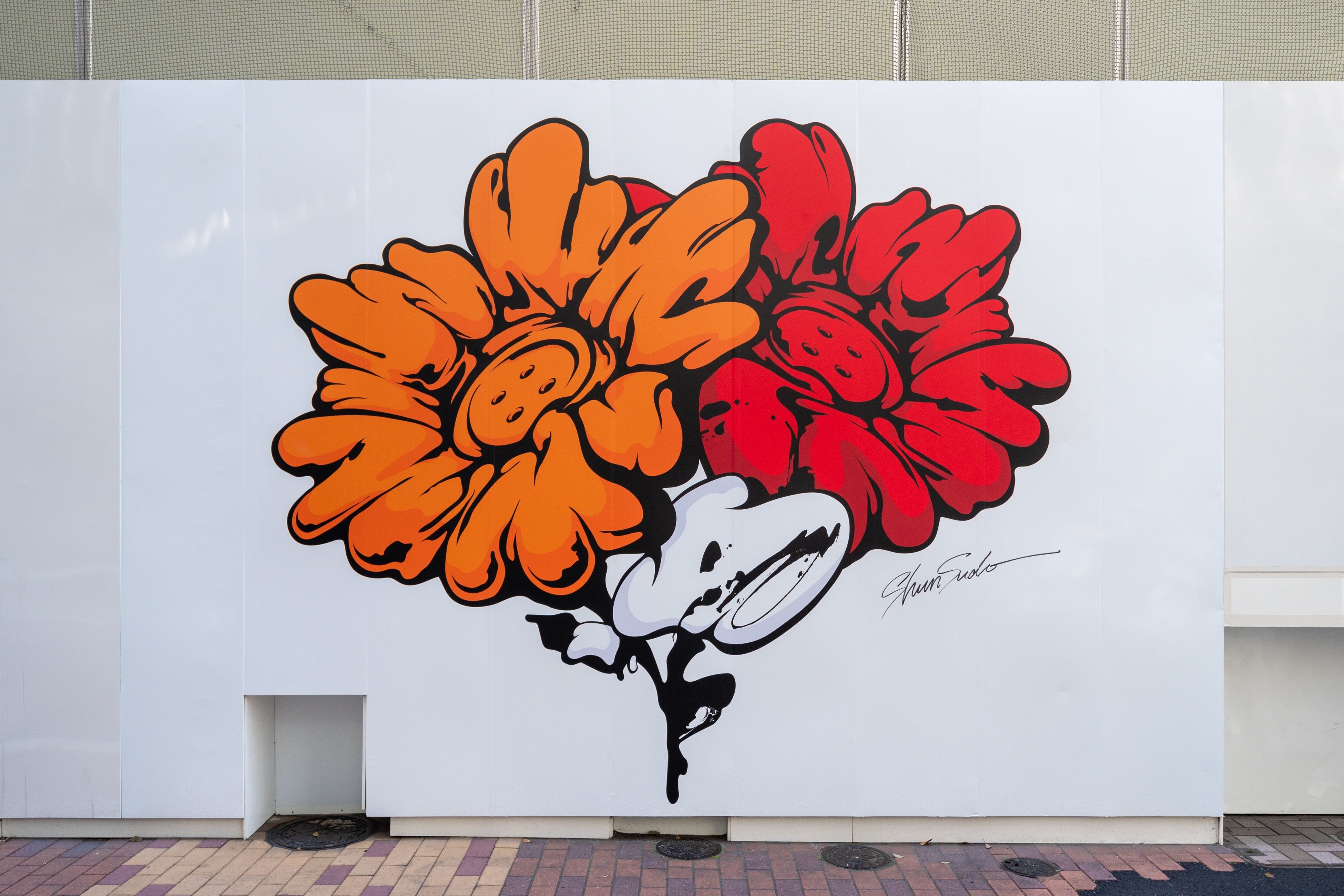 その第一弾としてアーティストSHUN SUDO氏の作品を掲出。Ginza Sony Park 地下1階の壁面にSHUN SUDO氏によって直接描かれ、2020年3月から閉園までの1年半もの間、来園者の方々に親しまれた作品を再現したものです。アーティスト自身が幼い頃にソニービルを訪れた際の記憶である、色彩豊かな花々と音楽をモチーフとし、1966年のソニービル創業からGinza Sony Parkに繋がる「Ginza Sony Park Project」が表現されています。