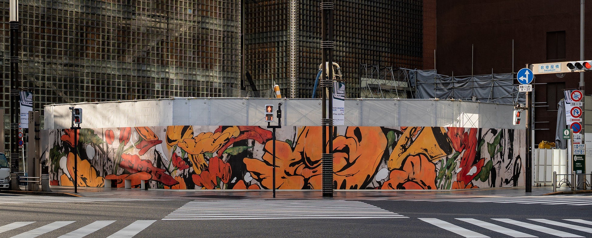 2024年の新・Ginza Sony Park完成に向けて、建設工事の仮囲いを「アートウォール」として活用。Ginza Sony Parkと関わりがあるアーティストの作品を掲出し、アートを通じて、銀座の街に賑わいやリズムをお届けしていきます。