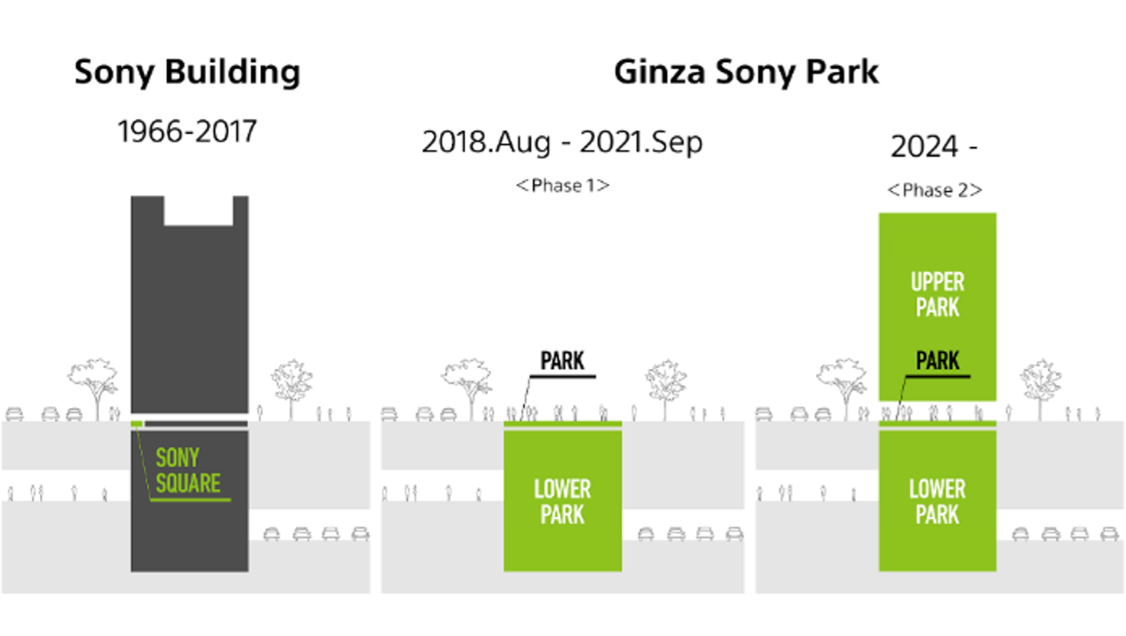 現在は建て替え工事を進めており、2024年に新・Ginza Sony Parkが完成する予定です。